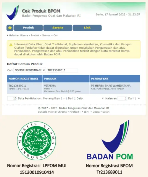VITASMA TELAH TERUJI BPOM & HALAL MUI